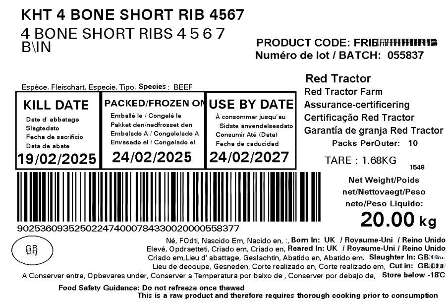 - 4 Bone - 4/5/6/7, cut of beef short ribs.