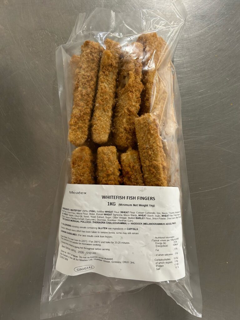 Crisp, golden-breaded whitefish fingers, perfect for foodservice, catering, and wholesale buyers seeking a reliable, ready-to-cook frozen product.