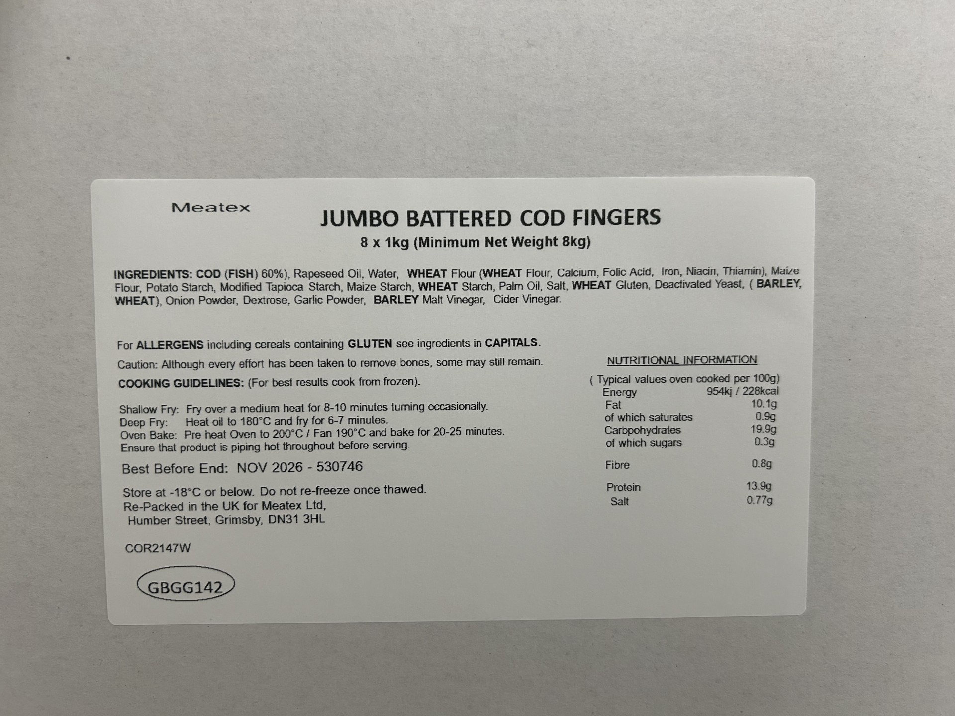 Jumbo Battered Cod Fish Fingers | 8kg Case