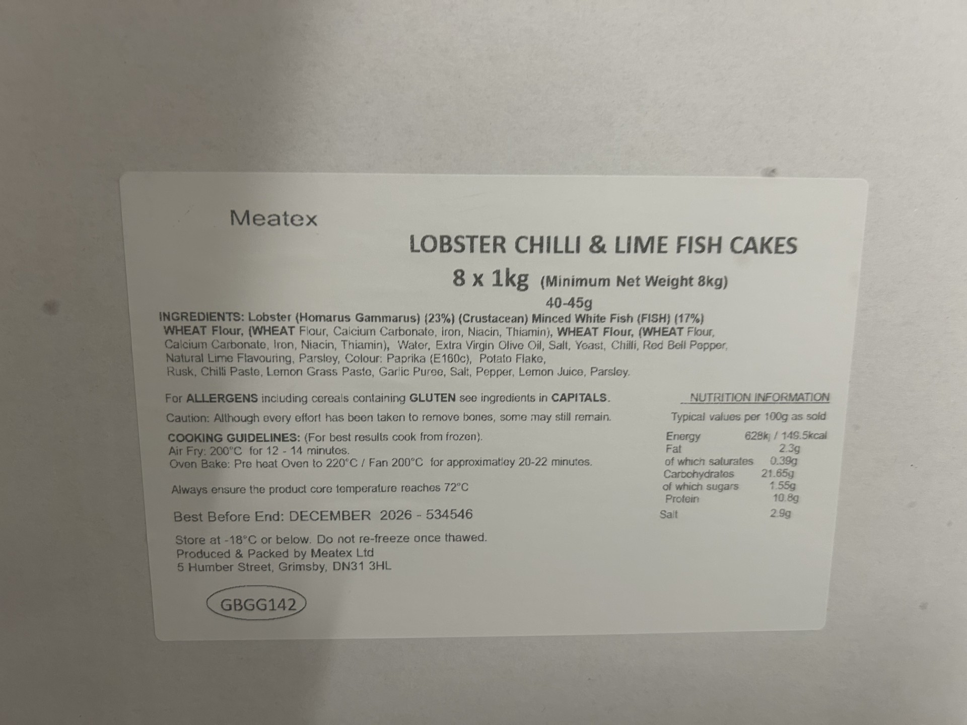 🦞 Lobster, Chilli And Lime Fishcakes | 8kg case (8x1kg packs)