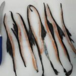 - Salmon back trimmings packed into 12.5kg blast freeze cartons.